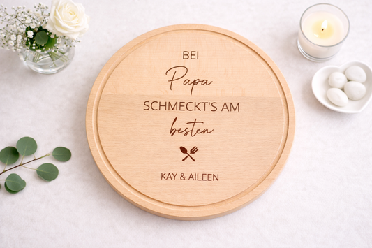 Rundes Holzbrett personalisiert " Für... schmeckt am besten"