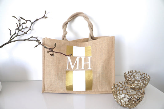 Jute Blockstreifen Tasche mit Initialen
