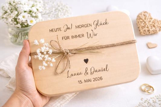 Personalisiertes Holzbrett zur Hochzeit – Hochzeitsgeschenk mit Namen & Datum