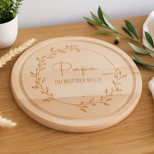 Frühstücksbrett aus Holz personalisiert – Glück ist...