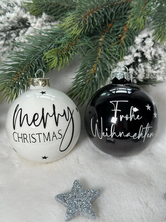 Weihnachtskugel „Frohe Weihnachten & Merry Christmas“