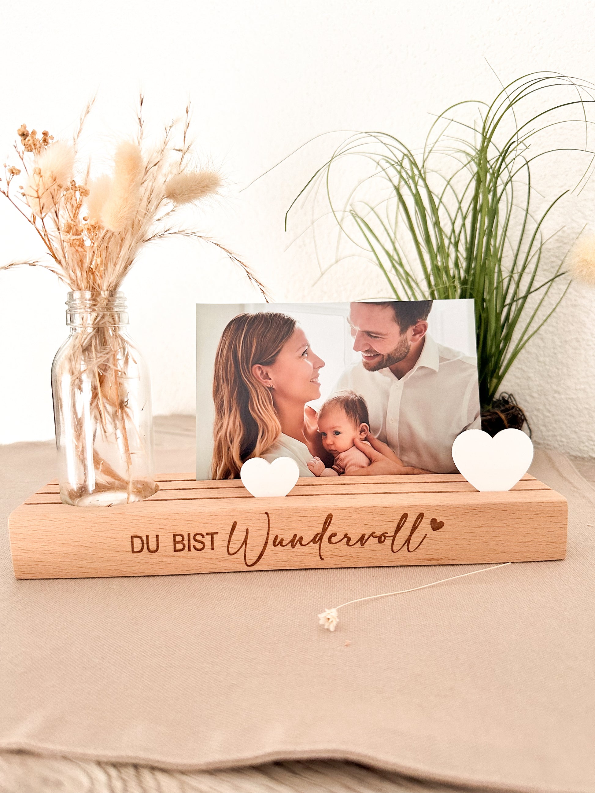Du erhältst bei uns der Kartenständer mit der Gravur “Du bist Wundervoll“ mit einem kleinen Herz dahinter