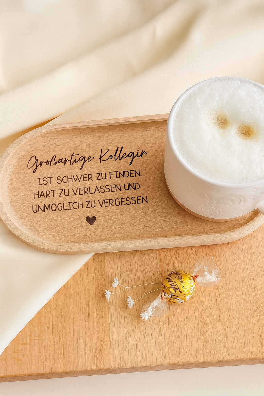 Personalisiertes Holztablett mit Gravur – Ein liebevolles Abschiedsgeschenk für deine Kollegin